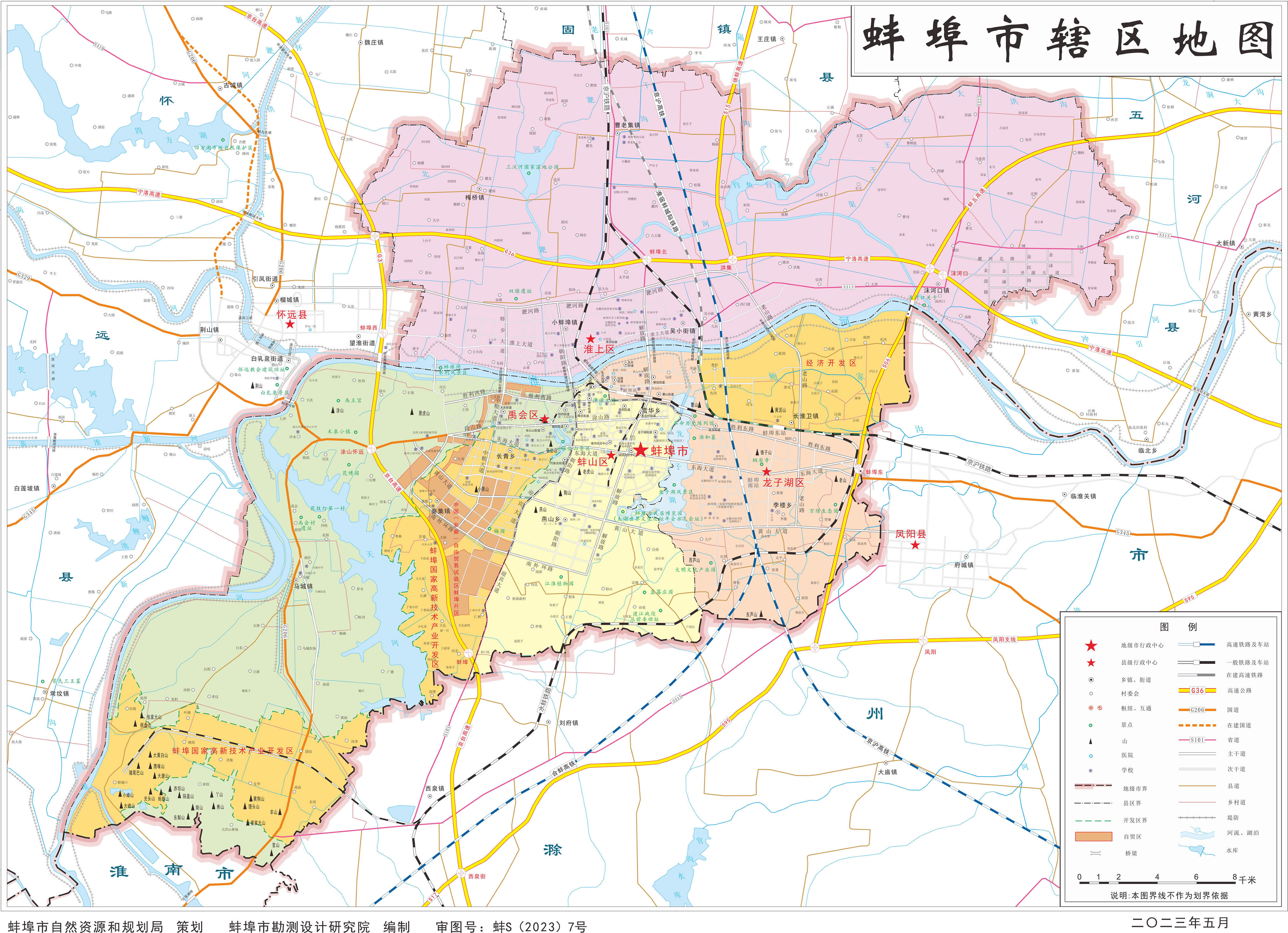 蚌埠市轄4個(gè)區(qū)、3個(gè)縣: