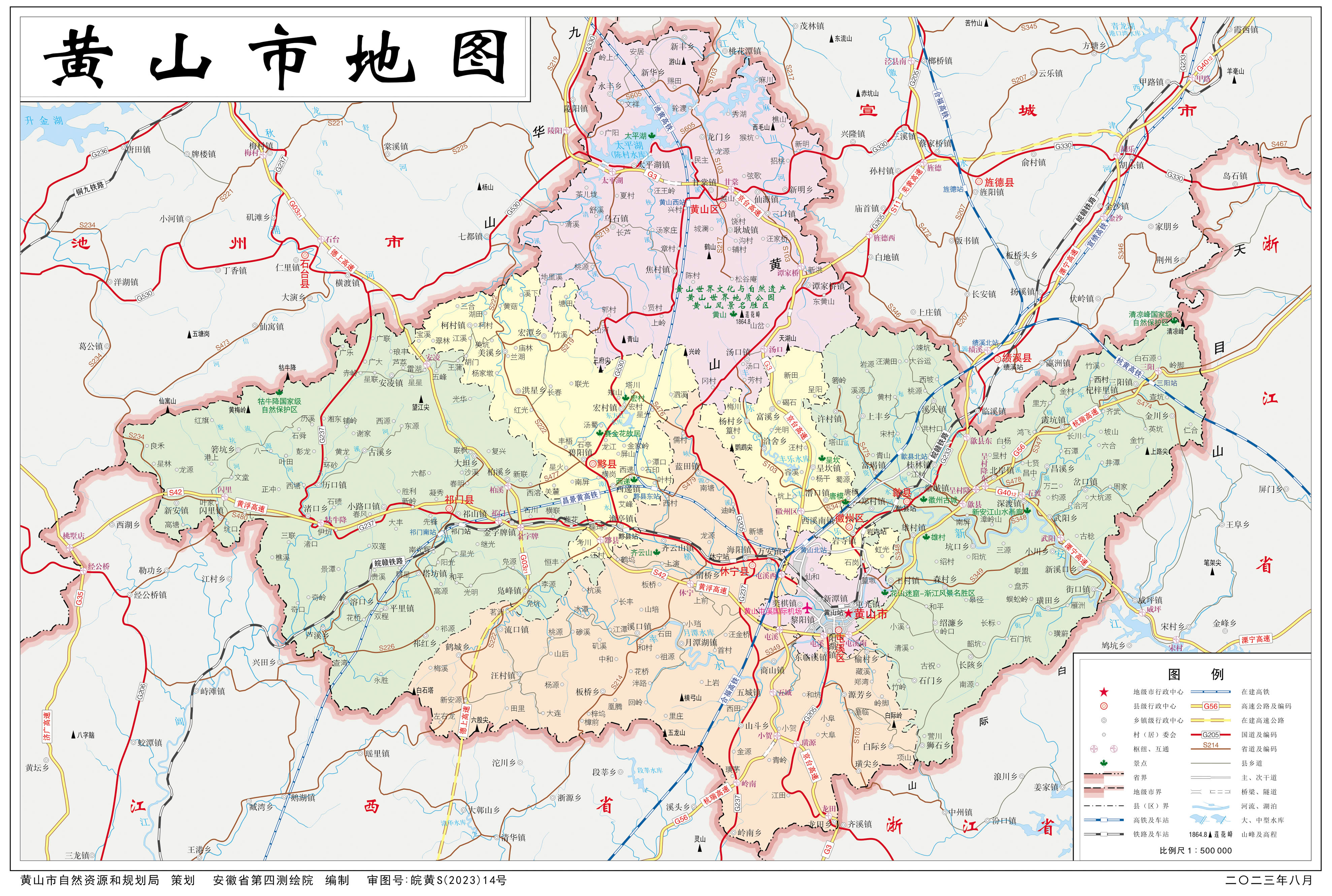 黃山市轄3個市轄區(qū)、4個縣: