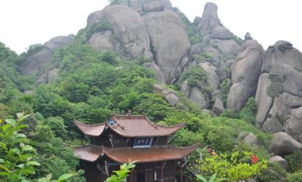 位于五老峰西北,海拔1014米。峰形若雄獅橫臥。頂有巨巖交疊,裂隙宏深。峰東麓明代建有獅子庵,石門、石墻尚存。