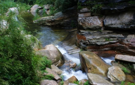 神龍谷八石九潭中第一潭,相傳曾經是東海龍王九太子靜心思過之處。它上承天庭之水,下通仙寓瑤池,有神靈之美;精巧靈秀,清澈見底,有天然清秀之美;神龍發(fā)怒,聲似雷鳴,水霧與云霧相連,有險峻之美;平時一簾清水飄然而下,有一種神韻之美。