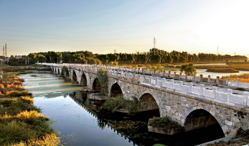 琉璃河大橋 琉璃河大橋,位于琉璃河段的京石公路上,是房山區(qū)境內(nèi)最大的石橋,其規(guī)模僅次于盧溝橋。琉璃河又名大石河,古稱圣水,流經(jīng)這里東行,匯入拒馬河,每到汛期,原建木橋常被沖毀。嘉靖十八年(1539年),修此橋。嘉靖二十五年建成。石橋南北向,橫跨琉璃河上,全長165.5米,寬10.3米,高8余米,共11孔,中孔最大。拱券正中雕有精美的獸頭。橋體全部用巨大的石塊砌筑,橋上建有實心欄板和望柱,其上均雕有海棠線等紋飾。嘉靖四十年(1561年),向南北兩方督修路堤。堤寬19.8米,高近4米,總長約2000米。堤面鋪以巨型條石。為傳說中的五里長街。從修橋到路堤建成,前后20余年。琉璃河石橋,是北京地區(qū)保存較為完好的古代石橋之一。 2013年3月,琉璃河大橋被國務(wù)院公布為第七批全國重點文物保護單位。