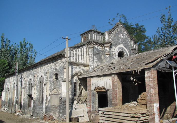 太和莊天主教堂 太和莊天主教堂,創(chuàng)建于民國三年(1914年),解放后即棄置不用。坐北朝南,是一座法國天主教教堂建筑,是房山區(qū)最早建立的教堂,也是房山區(qū)唯一一座保存基本完整的未經(jīng)拆改的教堂。面闊三間,進深六間。山墻頭一間兩側(cè)開券門。板瓦頂清水脊。堂內(nèi)有兩排八角磚柱。盡頭設(shè)石供桌,現(xiàn)已無存。