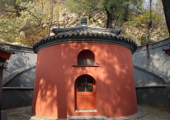 鐵瓦寺 鐵瓦寺位于河北鎮(zhèn)政府院內(nèi),是北京市重點(diǎn)文物保護(hù)單位,鐵瓦寺因殿頂鋪滿鐵鑄的瓦而聞名。該寺坐北朝南,背倚山巖,前臨大石河。 山門兩旁各有配殿二間,清水脊、石板頂,殿前各有一株古柏,院中間即為鐵瓦殿,是一座圓形的建筑,高6米,直徑近6米,殿墻刷成鐵紅色,券形門窗與大殿的圓柱形和諧相宜。攢尖式殿頂,鐵質(zhì)塔剎,頂尖由寶珠收攏,頂上自塔剎垂下六條鐵質(zhì)屋脊,將頂面均分成六個扇面形,頂面鋪蓋鐵瓦共458塊,每塊瓦長0.31米,直徑0.13米,重約4公斤,總重量約1882公斤。鐵瓦大部分鑄于明代,個別是清康熙時期修繕時補(bǔ)上的。