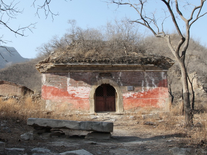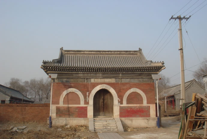 廣智禪寺 廣智禪寺坐西朝東,占地5畝左右,始建于明建文時(shí)期,清代曾修繕。原有兩進(jìn)院落,前低后高,梯狀布局。山門早已無存,門后為紅墻觀音寶殿,為全部磚石結(jié)構(gòu)的穹窿頂無梁殿,面闊9.50米,進(jìn)深8.40米(面闊與進(jìn)深相差不大,幾近正方形),據(jù)說是北京地區(qū)跨度最大穹窿頂古建筑。四面無窗,只有正面一個(gè)青石拱券門,廡殿頂灰筒瓦屋面,門上原有石額:“觀音寶殿”,2013年秋被盜走。殿內(nèi)原有漢白玉雕須彌座,現(xiàn)也已無存。