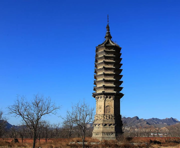 豆各莊塔 豆各莊塔位于青龍湖鎮(zhèn)豆各莊村,為房山區(qū)文物保護(hù)單位。始建于唐代。坐西朝東,是一座八角密檐式磚塔,通高約15米。塔身上有磚雕。八面磚雕輪、螺、傘、蓋、花、罐、魚、長(zhǎng)的佛八寶圖像。塔基上端為三層磚雕仰蓮。東面辟券門,其它各面分別開設(shè)磚雕的假門、假窗。塔身之上是八層仿樓閣密檐。第一層檐下裝飾斗拱。其它每?jī)蓪恿裰g做成仰、覆蓮瓣。檐子為疊澀式。塔剎由下大上小的兩層磚雕蓮花組成。這座塔的特點(diǎn)是采用蓮花裝飾的成分多:整個(gè)塔由基座上的三層仰蓮?fù)衅,門窗層以上每?jī)蓪娱苤醒胗盅b飾上下對(duì)稱的仰覆蓮瓣,共有八層;再用蓮花封頂。 風(fēng)景名勝