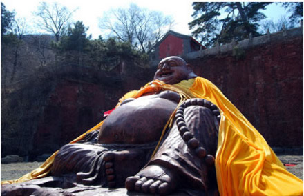 彌勒佛:千佛閣上坐神佛,納得天下福滿門。千年香樟木雕彌勒佛,作為戒臺寺唯一一尊露天佛,常得日月之光,納天地靈氣,立于千佛閣上修得萬佛之心,用萬世不變的歡喜笑顏,用大肚笑納天下事,也容載著天下人的希望。彌勒佛即未來佛,俗稱大肚彌勒,他強調(diào)要大度能容,不要計較人世間的是非憎愛。大肚彌勒寓神奇于平淡,示美好于丑拙,顯莊嚴于詼諧,現(xiàn)慈悲于揶揄,代表了中華民族寬容、和善、智慧、幽默、快樂的精神。香樟木質(zhì)地堅硬,且具香氣,是明清時期宮廷木器三大主要用材之一。香樟木年份越久越珍貴,千年香樟木自然就成了可遇不可求的無價之寶。戒臺寺此件木雕大佛系為一整塊千年香樟木根雕,雕工精美,形態(tài)可鞠,盤腿而坐,袒胸露腹,自然形態(tài)惟妙惟肖。