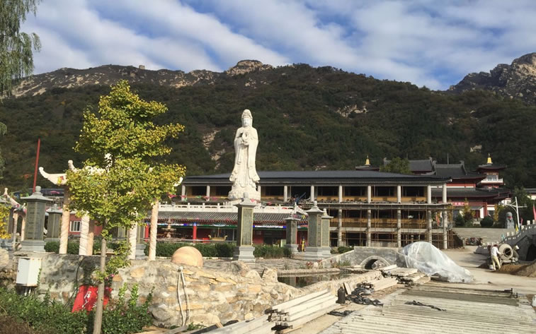 大云峰禪寺 大云峰禪寺位于溪翁莊鎮(zhèn)黑山寺村,寺院始建于唐代,唐代元和年間,憲宗委托高僧選址建寺。游遍北部山川,發(fā)現(xiàn)這處溪水潺潺之地,于是建寺,俗稱“黑山寺”。由于山上荊條繁茂密集曾名“荊林禪寺”,宋代曾重修復(fù)建,改名“云峰禪寺”。清乾隆年間,寺院眾僧橫行鄉(xiāng)里,驚動(dòng)朝廷,劉宰相利用皇帝口諭的諧音,嚴(yán)厲懲治了惡僧,最后一把火將寺院燒凈,只留下那洞穴遺跡可辨。后曾重建,又毀于清朝民國(guó)初年,2003年愛國(guó)華僑佛界厚德大行夏荊山長(zhǎng)老率佛門道友,開始修復(fù)這千年古剎,并更名“大云峰禪寺”。 大云峰禪寺屬于黑山寺風(fēng)景區(qū),后為五座樓靠山,前有朝山,近有案山。坐北朝南,山門有前廣場(chǎng),山門內(nèi)建有石橋,過石橋寺廟逐級(jí)向上是各寶殿,直至最高處的大雄寶殿。寺院西南處建有水池,分多個(gè)個(gè)體,錯(cuò)落有序。