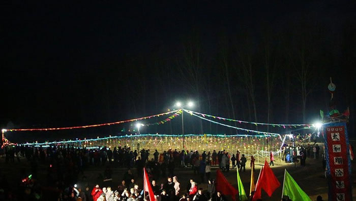 九曲黃河陣燈俗 九曲黃河陣燈俗俗稱“燈場(chǎng)子”,流傳于太師屯鎮(zhèn)東田各莊村。 明代洪武四年(1371),山西移民將“燈場(chǎng)子”傳入東田各莊,傳承至今,已有六百多年的歷史。 村中劉繼華老人保存的九曲黃河陣燈會(huì)圖譜已有百年歷史,圖中陣式按周易九宮八卦方位,以富貴不斷頭的傳統(tǒng)圖案九曲而成。陣內(nèi)乾、坎、艮、震、巽、離、坤、兌八宮加上中宮共有九宮,系模擬古代戰(zhàn)陣而成。 每年春節(jié)期間,東田各莊農(nóng)歷正月初十開始扎燈,正月十四、十五、十六三天正式舉行燈會(huì),正月十七后撤燈。燈會(huì)期間,人們從四面八方趕來觀燈賞會(huì),走燈陣,看大戲。走進(jìn)燈陣入口以后,如能順利地通過連環(huán)陣,再從出口返回,就意味著一年順順當(dāng)當(dāng)、平平安安,故當(dāng)?shù)赜?ldquo;順著燈陣走,能活九十九”的說法。 東田各莊九曲黃河陣燈俗有兩個(gè)主要特點(diǎn),一是燈場(chǎng)與花會(huì)相結(jié)合,二是燈會(huì)與戲曲表演相結(jié)合。九曲黃河陣燈會(huì)帶有某種智能游戲的性質(zhì),燈陣及其外延的燈會(huì)包含著豐富的文化內(nèi)涵,具有較高的歷史文化研究價(jià)值。 2008年6月7日,九曲黃河陣燈俗被國務(wù)院公布為第二批國家級(jí)非物質(zhì)文化遺產(chǎn)名錄。 風(fēng)景名勝