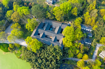 中央政治學(xué)校研究部舊址(彭氏民居),位于巴南區(qū)南泉街道白鶴林16號,重慶工程學(xué)院內(nèi)。該建筑由5至7米高的圍墻環(huán)抱,“囍”字型復(fù)合回廊式四合院布局,建筑面積3260平方米,占地面積5320平方米,原系清代鹽商彭氏私宅。