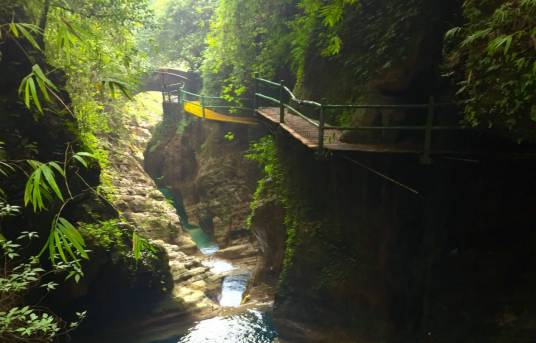 金刀峽位于重慶市北碚區(qū)金刀峽鎮(zhèn),華鎣山西南麓,是國(guó)家AAAA級(jí)旅游景區(qū)。傳說(shuō)峽中有一把金刀,每當(dāng)夜晚時(shí)分,金光閃閃照耀峽谷,元朝末年,華鎣山下有一壯士張昆,此人早年靠采薪伐木為生,時(shí)常出沒(méi)于華鎣山的深山老林之中。一日,張昆迷失于一峽谷之中。當(dāng)夜正值月圓,柔柔的月光輕輕地瀉進(jìn)峽中,張昆正陶醉于此情此景,卻見(jiàn)峽中深處有一事物在月光映照之下發(fā)出金燦燦的光輝。張昆近一看,原來(lái)是一把插入峽壁巖石的金刀。遂上前拔刀,不想紋絲不動(dòng)嵌在石縫中的金刀竟被輕輕抽出。張昆大喜:天賜金刀,定是降大任于我也!張昆憑此刀披荊斬棘,終得以出峽,金刀峽也因此而得名。金刀峽全長(zhǎng)約10公里,分上峽、下峽兩段,其中峽谷內(nèi)棧道全長(zhǎng)近7公里。上峽由于喀斯特地質(zhì)作用,地面切割強(qiáng)烈,形成獨(dú)特的峽谷溝壑,兩岸石壁如削,山勢(shì)岈合,垂直高度超過(guò)百米,上有古藤倒掛,下有潺潺流水;下峽由于流水侵蝕作用,有眾多洞穴群,潭潭相連,碧玉串珠,飛泉瀑布層層疊疊,古鐘乳、石筍、石柱千姿百態(tài)。主要有驚魂臺(tái)、藏刀洞、懸天飛瀑、天犬洞、神鷹峽、獅頭峽、一線天、沙溪湖、中峽天然浴場(chǎng)、千幻古巖、彌勒佛、心形潭等四十多個(gè)景點(diǎn)。