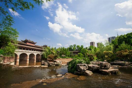 重慶璧山觀音塘濕地公園建造仿古建筑11棟、仿古亭8個、草亭7個,建筑凸顯明清風(fēng)格,亭臺樓閣以古代"璧山八景"命名,東林閣、茅萊軒、虎峰樓、涼傘亭等5200平方米的仿古建筑,再現(xiàn)了古代建筑巧于變化、精于組合的博大精深。整個公園形成了"亭臺到處皆臨水,樓閣雖多不礙山"的獨特意境。