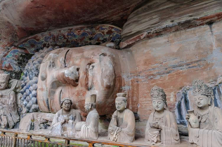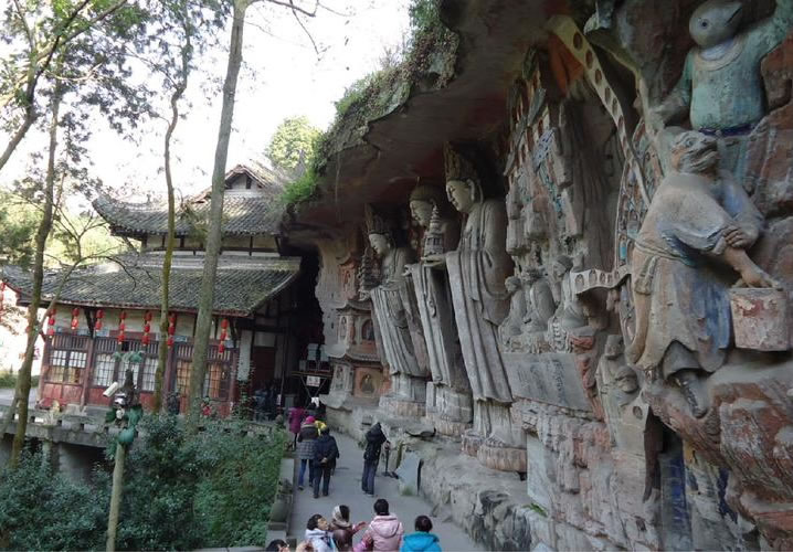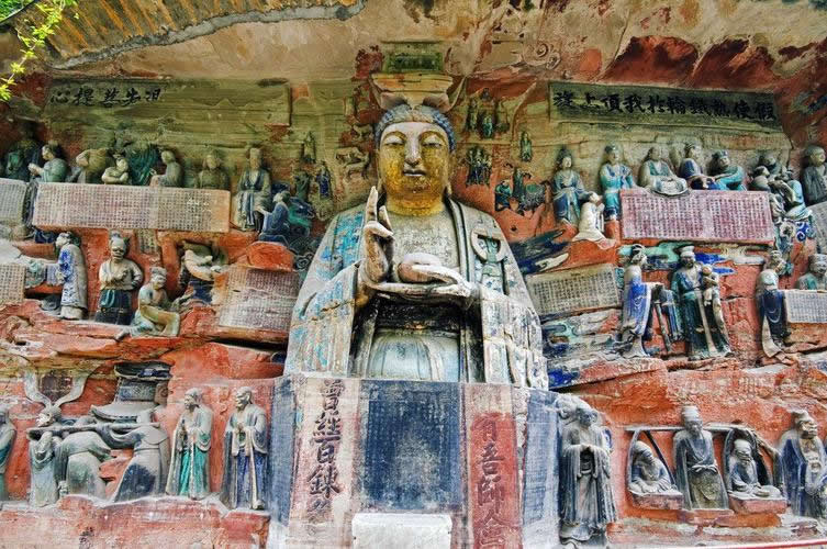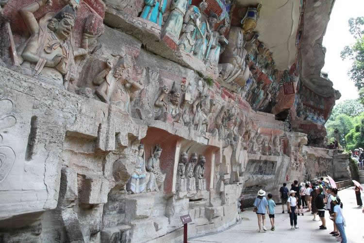 重慶市的大足石刻以其規(guī)模宏大、雕刻精美、題材多樣、內(nèi)涵豐富和保存完整而著稱于世。它集中國佛教、道教、儒家“三教”造像藝術(shù)的精華,以鮮明的民族化和生活化特色,成為中國石窟藝術(shù)中一顆璀璨的明珠。它以大量的實物形象和文字史料,從不同側(cè)面展示了九世紀(jì)末至十三世紀(jì)中葉中國石刻藝術(shù)的風(fēng)格和民間宗教信仰的發(fā)展變化,對中國石刻藝術(shù)的創(chuàng)新與發(fā)展做出了重要貢獻,具有前代石窟不可替代的歷史、藝術(shù)和科學(xué)價值。許多歐洲人、尤其是法國人,對大足石刻寵愛倍加。
