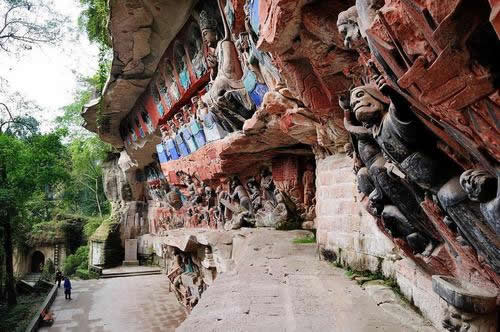 大足石刻位于重慶市大足區(qū)境內(nèi),是唐、五代、宋時所鑿造,明、清兩代亦續(xù)有開鑿,F(xiàn)為世界文化遺產(chǎn),世界八大石窟之一。