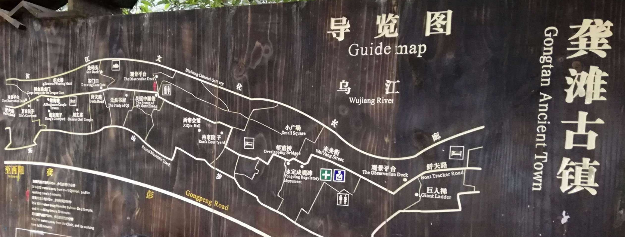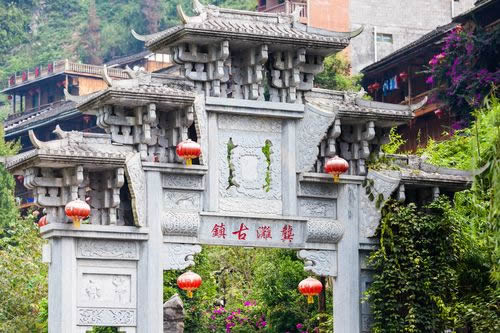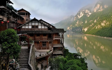 龔灘古鎮(zhèn)源自蜀漢,建置于唐,距今1800年的歷史。古鎮(zhèn)街道歷代修葺,至2005年總長約3千米,皆以石板街、吊腳樓、坡屋面、小青瓦為風貌特征。其中老街長1.5千米,存寺廟、祠堂、古碼頭、古纖道、古梯道、古橋梁、古牌坊、古樹、古井、古碑石等。青石板街將古鎮(zhèn)按照不同的歷史背景、民族文化以商業(yè)業(yè)態(tài)形式布局為五段,以榨油、織布為特色的“油坊路”,以背夫腳夫文化為主題的“背夫路”,以西秦會館為代表建筑的“西秦路”,展示纖夫文化的“纖夫路”,以鹽商鹽號為特色的“老鹽路”。有50余堵別具一格的封火墻、200多個古樸幽靜的四合院、50多座形態(tài)各異的吊腳樓,獨具地方特色,是中國國內保存完好且頗具規(guī)模的明清建筑群。