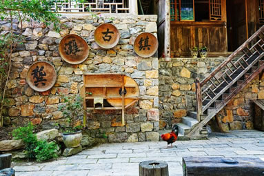 冉家院子為冉土司的住宅,右鄰西秦會館,處于街道轉折變化之處,是古鎮(zhèn)主要的建筑之一。冉家院子是由土司冉三爺修建的,至今已有百多年歷史,一直由冉姓土司家族居住。占地面積約為150平方米,總平面呈三合院。院子坐東朝西,側面進入院子,臨石板街的是吊腳樓的商鋪。冉家院子的建筑結構與其他民居一樣是穿斗結構,有三個開間,“五榨四掛”,青瓦屋面,室內花窗雕飾精美,建筑材料主要是木材,左右兩側為磚砌筑的封火墻。