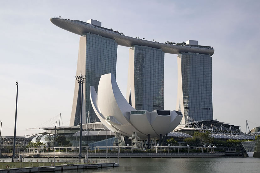 新加坡金沙娛樂城 新加坡金沙娛樂城位于濱海灣的新加坡金沙娛樂城設(shè)有賭場(chǎng)、歌劇院、藝術(shù)科學(xué)博物館、會(huì)議中心與展覽設(shè)施、零售商和多樣化的餐館等,共6大建筑系列。在高達(dá)55層樓的酒店內(nèi),擁有2561個(gè)房間。為酒店冠上榮耀之光的,是位于第57樓的金沙空中花園,這座占地一公頃的空中綠洲將匯集蔥蘢的綠蔭、雅致的花園,甚至一座無邊泳池。