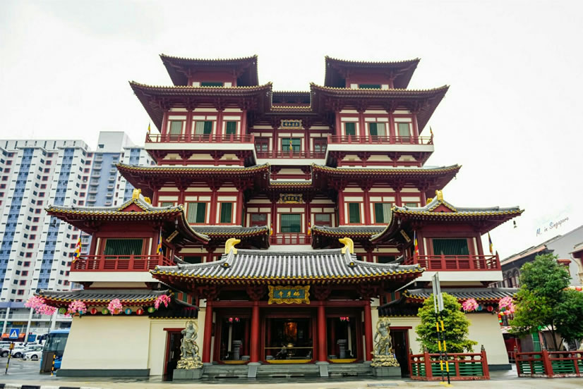 新加坡佛牙寺 新加坡佛牙寺坐落于牛車水碩莪街,樓高五層,全按中國唐代佛寺風(fēng)格建筑而成。第一層是山門、鐘樓、鼓樓、觀音殿、百龍殿。第二層是阿蘭若藏經(jīng)閣及展覽廳、文殊殿,夾層樓是蓮芯茶坊、地藏殿、法堂、戒光堂、諸山長(zhǎng)老德像紀(jì)念館。第三層是普賢殿、龍華院—佛教文物館。第四層是靈光殿、佛牙舍利金塔。第五層頂樓有萬佛閣、毗盧遮那大光明經(jīng)咒轉(zhuǎn)經(jīng)輪藏、萬福光明燈和胡姬花園。