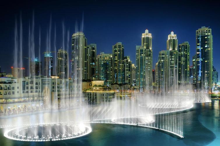 迪拜音樂噴泉 迪拜音樂噴泉(Dubai Fountain)是世界最大的噴泉,也是最壯觀的噴泉。 迪拜音樂噴泉由原世界第一美國Bellagio噴泉的制造商WET公司設(shè)計(jì)的,總投資2.18億美元,總長度為275米,最高可以噴到150米,相當(dāng)與一棟50層樓的高度。據(jù)報(bào)道迪拜音樂噴泉的燈光可以在20英里的內(nèi)任何一個地方看到,讓它成為中東地區(qū)最亮的焦點(diǎn)。 該噴泉會噴射2.2萬加侖的水,并配有6600個燈光以及50個彩色投影機(jī)。噴出的水柱有1000多種變化,可以說是名副其實(shí)的千變?nèi)f化。伴隨著數(shù)首阿拉伯以及來自世界各地的歌曲,噴灑的水柱像是在人們面前跳著優(yōu)雅的舞蹈,每一場使用的音樂不同、編排的舞姿也不同。 音樂噴泉平日每天從晚上6點(diǎn)到10點(diǎn),每半小時表演一次,每次表演長達(dá)3-5分鐘,周末從晚上6點(diǎn)表演到11點(diǎn)、并在晚上9點(diǎn)后增加至每20分鐘表演一次。