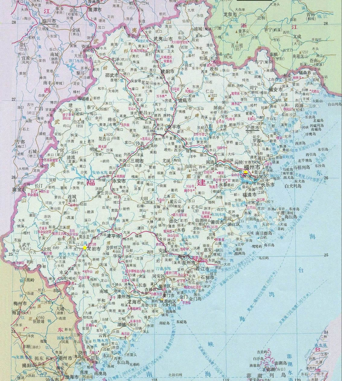 福建山明水秀,人文薈萃。著名的武夷山、湄洲島、太姥山、鼓浪嶼、桃源洞、玉華 洞以及古寺廟、古塔、古橋、古城堡和王審知、鄭成功、林則徐、陳嘉庚等名流英杰的舊居遺跡等,都是獨(dú)具特色的旅游勝地。泉州在元代曾是我國最大的貿(mào)易港口.