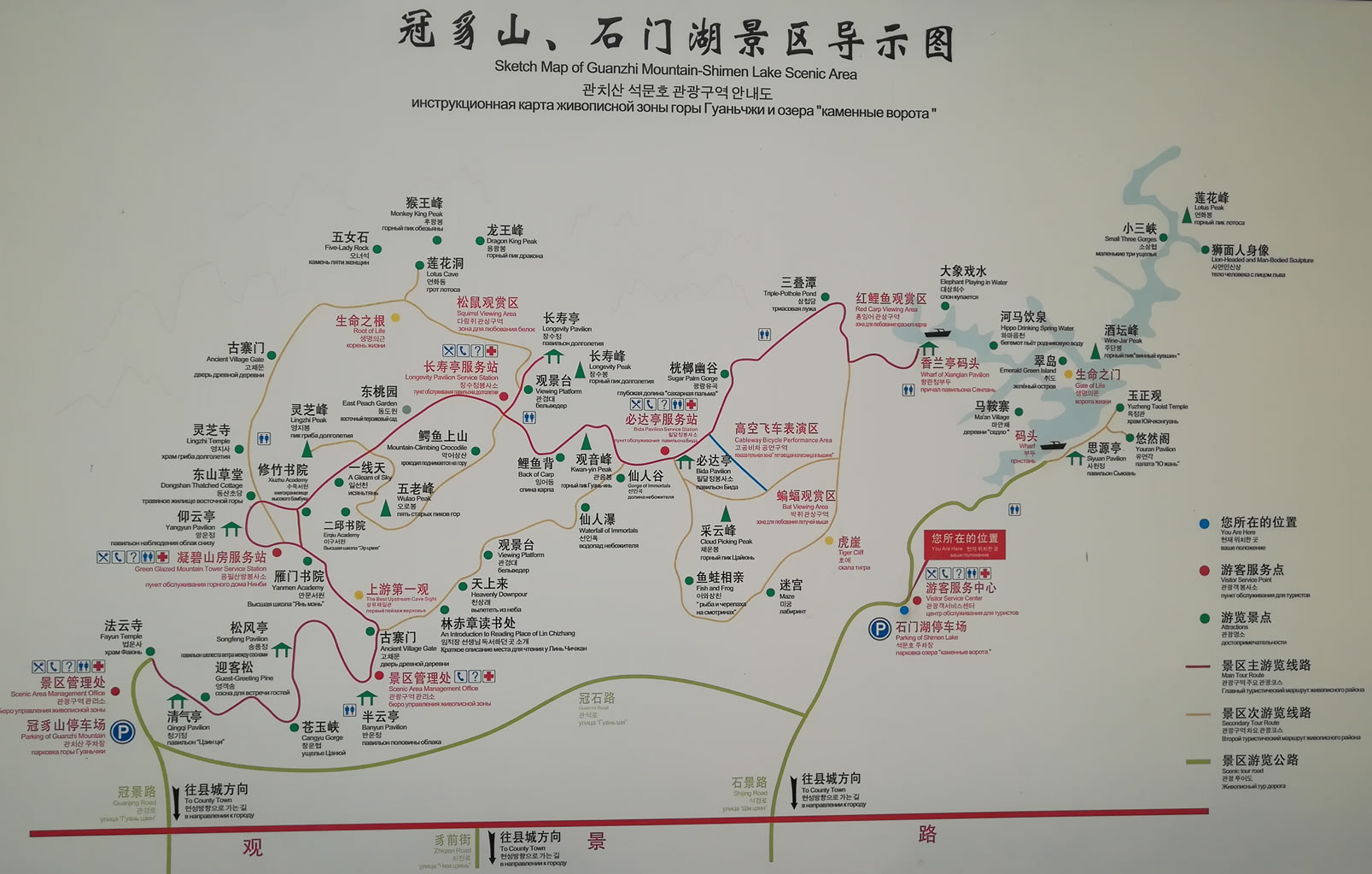 石門湖——坐落于冠豸山東南的石門湖,面積四百多畝,如一塊翡翠,鑲嵌在冠豸山的險峰奇谷中,四周環(huán)山,“是連城昔日八景之一的"石門宿云"所在地。 要深度感受石門湖的清幽以及風景如畫,選擇蕩舟其間,無疑是最好的方式。登上游船,緩緩前行,船漿劃破波光瀲滟的湖面,推動著小舟時而穿過狹窄的峽谷,時而閑庭信步開闊的湖面,“水轉(zhuǎn)山間走,山回水中行”,山風習習,清涼舒坦。山在慢慢后退,水在慢慢后退,眼看就到湖的盡頭,“山窮水盡疑無路”,卻“柳暗花明又一村”,豁然開朗處曲徑通幽,山環(huán)水繞,水傍山立。