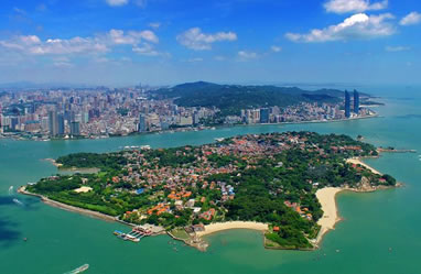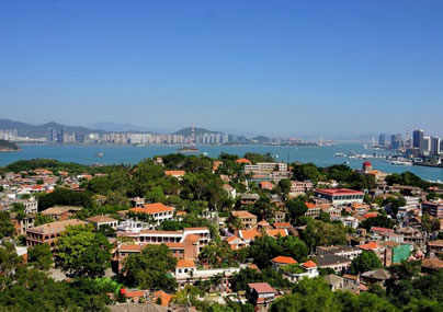 鼓浪嶼位于福建省廈門市思明區(qū)鼓浪嶼街道,面積1.88平方公里,與廈門島隔海相望,至高點(diǎn)為日光巖,與廈門島上的廈門世茂海峽大廈、廈門大學(xué)等隔海相望。