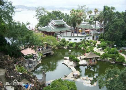 坐落在鼓浪嶼港仔后,建于民國(guó)二年(1913年),主人林永嘉,又名叔臧,園名即以他的名字諧音而命名。甲午戰(zhàn)爭(zhēng)清廷失敗,翌年割臺(tái)灣給日本,林維源及其子叔臧不愿當(dāng)亡國(guó)奴,遷到鼓浪嶼居住。其后,叔臧建了這座花園。菽莊花園總面積20328平方米,其中水域3352平方米,建筑物2451平方米。