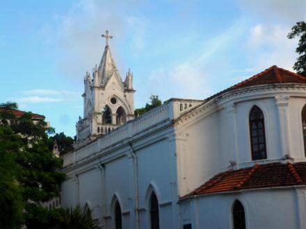 位于鼓浪嶼鹿礁路34號(hào),該址原為西班牙領(lǐng)事館,后西班牙領(lǐng)事館撤消,改為法國(guó)領(lǐng)事館。民國(guó)五年(1916年),西班牙多明我會(huì)傳教士馬守仁被羅馬教廷任命為廈門教區(qū)主教,把田尾路一座作為多明我會(huì)會(huì)所的樓房與法國(guó)領(lǐng)事館交換,把領(lǐng)事館改為主教樓。民國(guó)六年(1917年)在主教樓前面建教堂,作為主教座堂,建筑面積287平方米,該樓是一座哥特式單鐘樓教堂。教堂正中祭臺(tái)供奉耶穌君王像,兩邊各有一個(gè)小祭臺(tái),可容納200人左右。