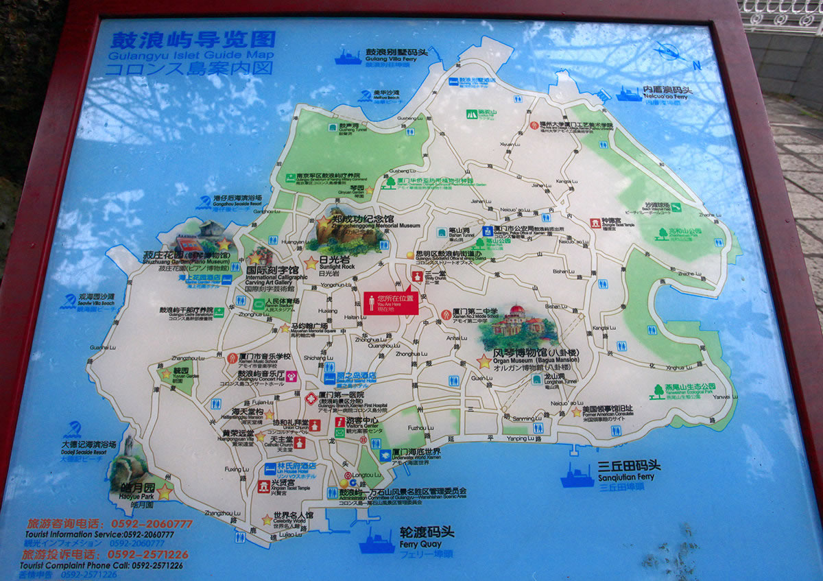 路線2:輪渡碼頭一三丘田碼頭一沙灘球場(chǎng)、工藝美術(shù)學(xué)院一鼓浪別墅一菽莊花園一輪渡碼頭。