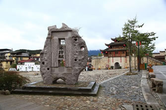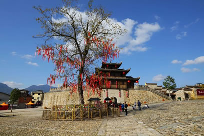 和平古鎮(zhèn)現(xiàn)存東北兩座譙樓。東門(mén)譙樓是三重檐歇山式,而其他三座譙均是兩重檐的。東門(mén)譙樓,門(mén)洞用石條砌成,墻體用大塊的卵石筑成。城墻腳下的這塊“禁止搬運(yùn)、保固地方”的石頭,是和平“舊市三禁碑”之一,為清代設(shè)立。由于當(dāng)時(shí)社會(huì)地主少、農(nóng)民多,農(nóng)民每次把收成的大部分上交給地主,在青黃不接的時(shí)候,糧價(jià)上漲,地主就把大部分的糧食外運(yùn)到邵武城關(guān)或福州,造成產(chǎn)糧地變?yōu)槿奔Z地,農(nóng)民面臨饑餓的威脅,因而設(shè)此碑,并輪流放哨,規(guī)定所有私自外運(yùn)的糧食都必須沒(méi)收或低價(jià)收購(gòu),因而它起到維護(hù)當(dāng)時(shí)的糧食市場(chǎng)的作用。北門(mén)譙樓,當(dāng)?shù)厝朔Q“武陽(yáng)樓”,因它對(duì)面的山叫武陽(yáng)山,清同治年間翻修過(guò)。城門(mén)的門(mén)洞用條石砌成,比東門(mén)門(mén)洞高大。城門(mén)兩邊各保留了一段用鵝卵石筑成的明城墻,鵝卵石上長(zhǎng)滿青苔,漫漶的縫隙間長(zhǎng)著青青野草,四季皆有野花開(kāi)放,充滿了詩(shī)情畫(huà)意。風(fēng)雨譙樓,見(jiàn)證百年夕陽(yáng)煙雨;古樸城門(mén),迎送多少古鎮(zhèn)喜憂。譙樓走過(guò)的是悠悠歲月,形容雖然殘破斑駁,留下的卻是耐人尋味的古鎮(zhèn)歷史。