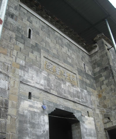 位于和平古鎮(zhèn)東門(mén)。此門(mén)李氏清晚期“一門(mén)九大夫”。建于清同治年間的李氏大夫第,為奉政大夫、知州李春江,奉直大夫、直隸州州同李奇川的宅府,俗稱“李恒盛”(寓為永遠(yuǎn)繁盛)。其門(mén)樓磚雕精致細(xì)膩,人物形態(tài)栩栩如生,美輪美奐。八字面的墻上有四幅《三國(guó)演義》里的典故:“斬顏良”、“華容道”、“長(zhǎng)坂坡”、“博望坡”和“宋太祖千里送京娘”,還有雕刻精美的松、竹、梅、鶴、鹿、麒麟等組合的畫(huà)面。所雕的龍?jiān)谙、鳳在上,是典型的清同治間產(chǎn)物,歷史時(shí)代特征非常明顯。該大夫第建筑面積1000余平方米,四合院式天井院建筑,南側(cè)有木構(gòu)二層護(hù)厝。合院內(nèi)三進(jìn)廳,均三開(kāi)間,穿斗式構(gòu)架,大式作法。門(mén)欞、窗欞、雀替等構(gòu)件雕飾花草圖案和人物故事。石柱礎(chǔ),均有桎。廳堂柱上原有用大毛竹片雕刻的一副意義深刻的對(duì)聯(lián):天下第一等人忠臣孝子;世間只兩樣事耕田讀書(shū)。充分體現(xiàn)了儒家傳統(tǒng)文化――忠孝與長(zhǎng)期的耕讀文化。站在第三廳的中央可遠(yuǎn)望二進(jìn)廳屋頂有一個(gè)四不象怪獸的屋脊裝飾,即古樸又神秘。