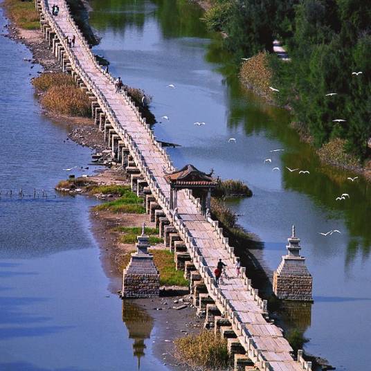 安平橋,曾用名五里橋、西橋、安海橋,是中國福建省泉州市境內連接晉江市和南安市的一座橋梁,是世界上中古時代最長的梁式石橋,也是中國現(xiàn)存最長的海港大石橋,是古代橋梁建筑的杰作,享有“天下無橋長此橋”之譽。
