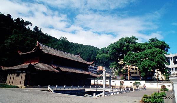 南溪書(shū)院:在尤溪縣城南的公山之麓,原為邑人鄭義齋館舍。北宋宣和五年(1123年),朱熹之父朱松任尤溪縣尉,去官后寓居于此。南宋建炎四年(1130年),朱熹在此誕生。朱熹逝世后,縣令李修于嘉熙元年(1237年)捐資在此修建文公祠、韋齋祠、半畝方塘和尊道堂等建筑,祀朱家父子。寶元年(1253年),宋理宗賜額“南溪書(shū)院”。元至正元年(1341年),分建二祠,明清后屢有修繕擴(kuò)建。書(shū)院古樸莊嚴(yán),現(xiàn)建筑面積1000平方米,有韋齋祠、觀(guān)書(shū)第、毓秀坊、毓秀亭等建筑。正堂當(dāng)中立朱熹石膏塑像,兩旁是朱子手書(shū)板聯(lián)四幅:“讀書(shū)起家之本 和順齊家之本 勤儉治家之本 循理保家之本”。四壁高懸其上溯八代列祖列宗畫(huà)像。書(shū)院內(nèi)的方塘,為朱熹幼年讀書(shū)處。朱熹《觀(guān)書(shū)有感》詩(shī)曰:“半畝方塘一鑒開(kāi),天光云影共徘徊;問(wèn)渠那得清如許,為有源頭活水來(lái)”。其中的“半畝方塘”即指此處。明弘治十一年(1498年),知縣方溥主持,把半畝方塘擴(kuò)大浚深,并建亭于塘上,通以石橋,取名“活水亭”,今皆修復(fù)。