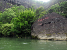峰頂胡麻澗旁的石壁上,有歷代摩崖石刻近百處。其中最大一幅為“第一山”,系道光壬辰冬武顯將軍嶺南徐慶超題寫。意思是說(shuō)天游峰即是“武夷第一勝地”,理應(yīng)號(hào)稱“第一山”。也有人解釋說(shuō),武夷山是道教名山,列三十六洞天中的第十六升真元化洞天。