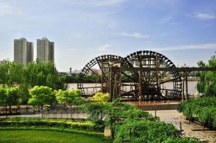 蘭州水車博覽園,位于市內(nèi)濱河路西段,東鄰“黃河鐵橋”,西鄰“黃河母親”雕塑,北望白塔山公園,南近白云觀,是濱河路旅游線上的重要一景