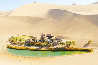 | 敦煌鳴沙山月牙泉景區(qū)位于甘肅省敦煌市城南5千米處,景區(qū)范圍界定為76.82平方千米,核心景區(qū)面積界定為12.79平方千米,規(guī)劃外圍控制地帶面積為136.04平方千米。景區(qū)內(nèi)地貌主要有大、小泉灣和周圍的鳴沙山組成。小泉灣是間于東沙山與北沙山的洼地,主要用于辦公和生活區(qū)。大泉灣是北沙山與南山之間的洼地,月牙泉和月泉閣等古建筑群分布其內(nèi),也是景區(qū)的核心。
