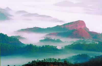 丹霞山不僅風景奇秀,而且生物資源豐富。這里屬中亞熱帶季風氣候,氣候溫和,雨量充足,年平均溫度20度,年降雨量1640毫米,植物種類繁多,生長茂盛,主要植被為中亞熱帶常綠闊葉林。經(jīng)鑒定樹齡一百年以上的名樹古木有28株,其中三百年以上的有14株,“丹霞梧桐”更是世界上丹霞山最為著名的花卉,其品種有春蘭、寒蘭、白蘭、墨 蘭、劍蘭、蕙蘭、二葉蘭等數(shù)十種,又以白墨、綠墨、鳳尾、報歲等最為名貴。1987年,這里發(fā)現(xiàn)的一株 “達摩蘭”更是稀世珍品,當時世界上只發(fā)現(xiàn)兩株(另一株是在臺灣達摩廟發(fā)現(xiàn),“達摩蘭”的名字即由此而來)。這株丹霞達摩蘭,當年在香港年花市出時標價高達100萬港元。每到花開季節(jié),丹霞蘭滿山飄香,游人循香覓跡,別有一番情趣。丹霞山區(qū)出產(chǎn)的“白毛尖茶”則是久負盛名的特產(chǎn),是綠茶中的珍品,清代嘉慶年間曾為宮廷貢品。其茶牙粗壯,密披銀白色的毫毛,茶湯清澈黃亮,味甘醇,有一股天然的蘭花清香,為我國三大白毛名茶之首,曾在林業(yè)部“林業(yè)名優(yōu)物新博覽會”上榮獲金獎。