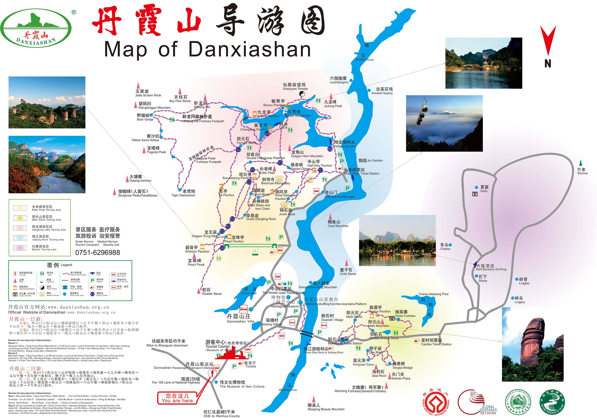 中國紅石公園——丹霞山,位于韶關(guān)市境內(nèi),面積290平方千米,是廣東省面積最大、景色最美的風景區(qū)。1988年以來,丹霞山分別被評為國家風景名勝區(qū)、國家級地質(zhì)地貌自然保護區(qū)、國家AAAAA級旅游區(qū)、國家地質(zhì)公園、世界地質(zhì)公園。