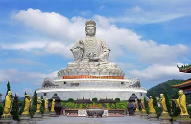 觀音像位于海拔488米的觀音山頂,是公園內(nèi)集游、行、購、食等為一體的大型游客集散地,為廣大游客和信眾到觀音山的必游之地。世界最大花崗巖石雕觀音圣像,用極具靈氣的,公園建成時(shí),擇極具靈氣的花崗巖,靠人工雕琢,歷時(shí)三載,終請成凈高三十三米、重達(dá)三千多噸的世界最大花崗巖觀世音菩薩圣像。