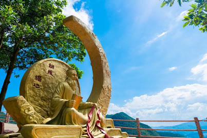 大月老,別名柴道煌,民間又稱月下老人、月下老兒,宋州宋城人,是中國民間傳說中主管姻緣的仙人,對人間男女以紅繩相系,確定姻緣。觀音山上的月老臺(tái)位于吉祥路中段,高3米,由坐式老人及半月組成,在月下倚布囊、坐于階上、向月檢書的老人正是執(zhí)掌天下之婚牘,維系千里之姻緣的月老。