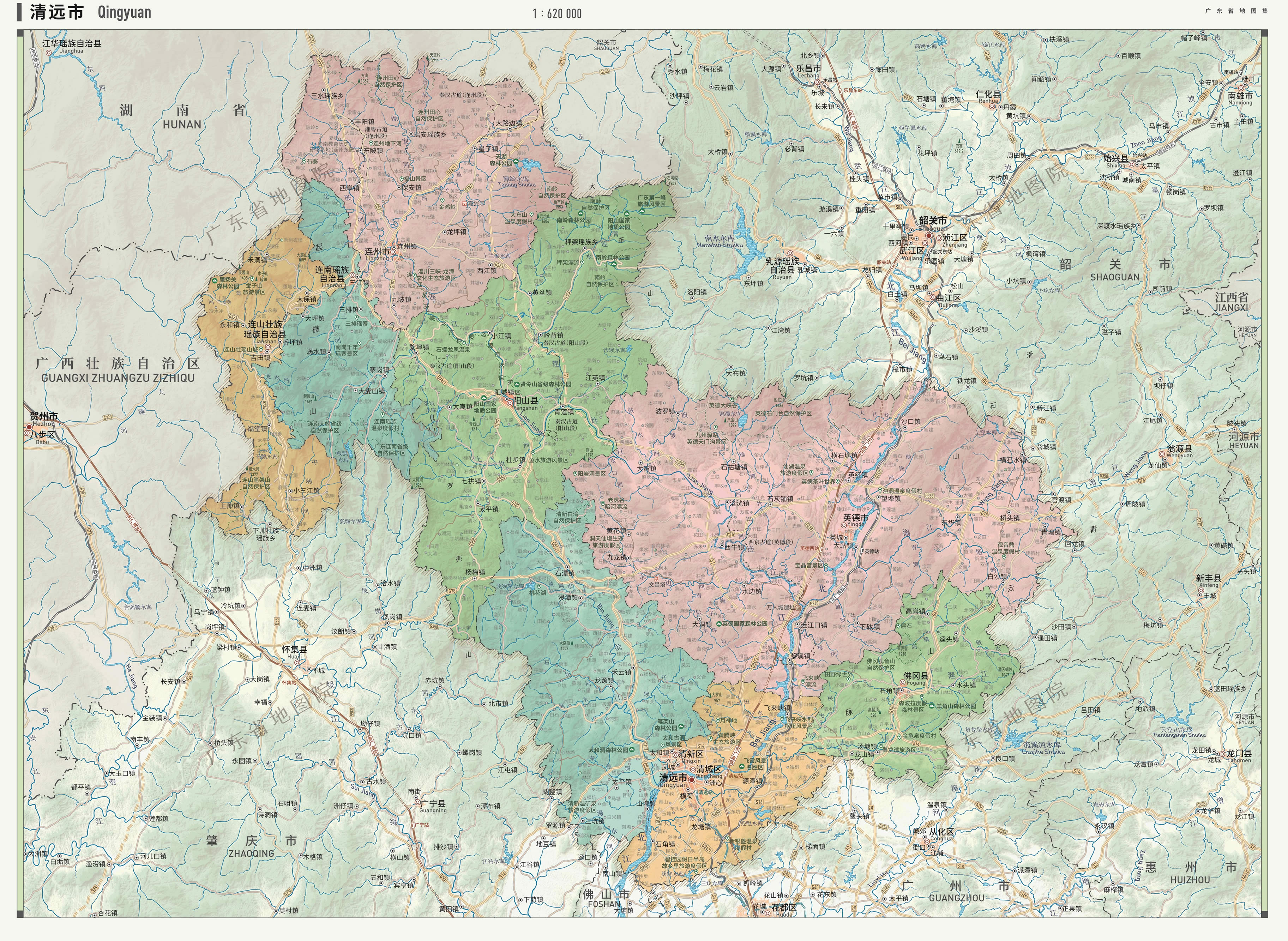 清遠市轄2個市轄區(qū)、2個縣、2個自治縣,代管2個縣級市: