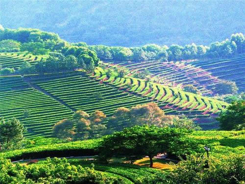 雁南飛茶田是飽蘸著祖國茶文化,在青山綠水間濃墨重彩揮灑而就的融茶葉生產(chǎn)、加工與旅游、度假于一體的山區(qū)“三高農(nóng)業(yè)”、“生態(tài)農(nóng)業(yè)”、“旅游農(nóng)業(yè)”的開放型旅游景區(qū),被譽(yù)為“現(xiàn)代農(nóng)業(yè)開發(fā)的成功范例”,梅州“三高農(nóng)業(yè)”開展的一個(gè)樣板和典范。雁南飛茶田在茶葉種植的同時(shí)結(jié)合了果樹的種植和園林綠化,大片的茶樹與龍眼、荔枝、芒果、枇杷等南國佳果、各式園林綠化景點(diǎn)相隔其中競相媲美。雁南飛茶田在科學(xué)種植的同時(shí),采用傳統(tǒng)工藝結(jié)合現(xiàn)代高新技術(shù),精制出有獨(dú)特自然香型的雁南飛高級系列茗茶,并賦于濃厚的文化內(nèi)涵和高附加值,創(chuàng)造了名牌精品。雁南飛茗茶主要有:金單叢烏龍茶、自然香烏龍茶、金桂蘭烏龍茶、人參烏龍茶、金觀音烏龍茶、桂花烏龍茶,此外還有特制的茉莉花綠茶、映山紅紅茶等品種,適合不同品味的人士品茗。