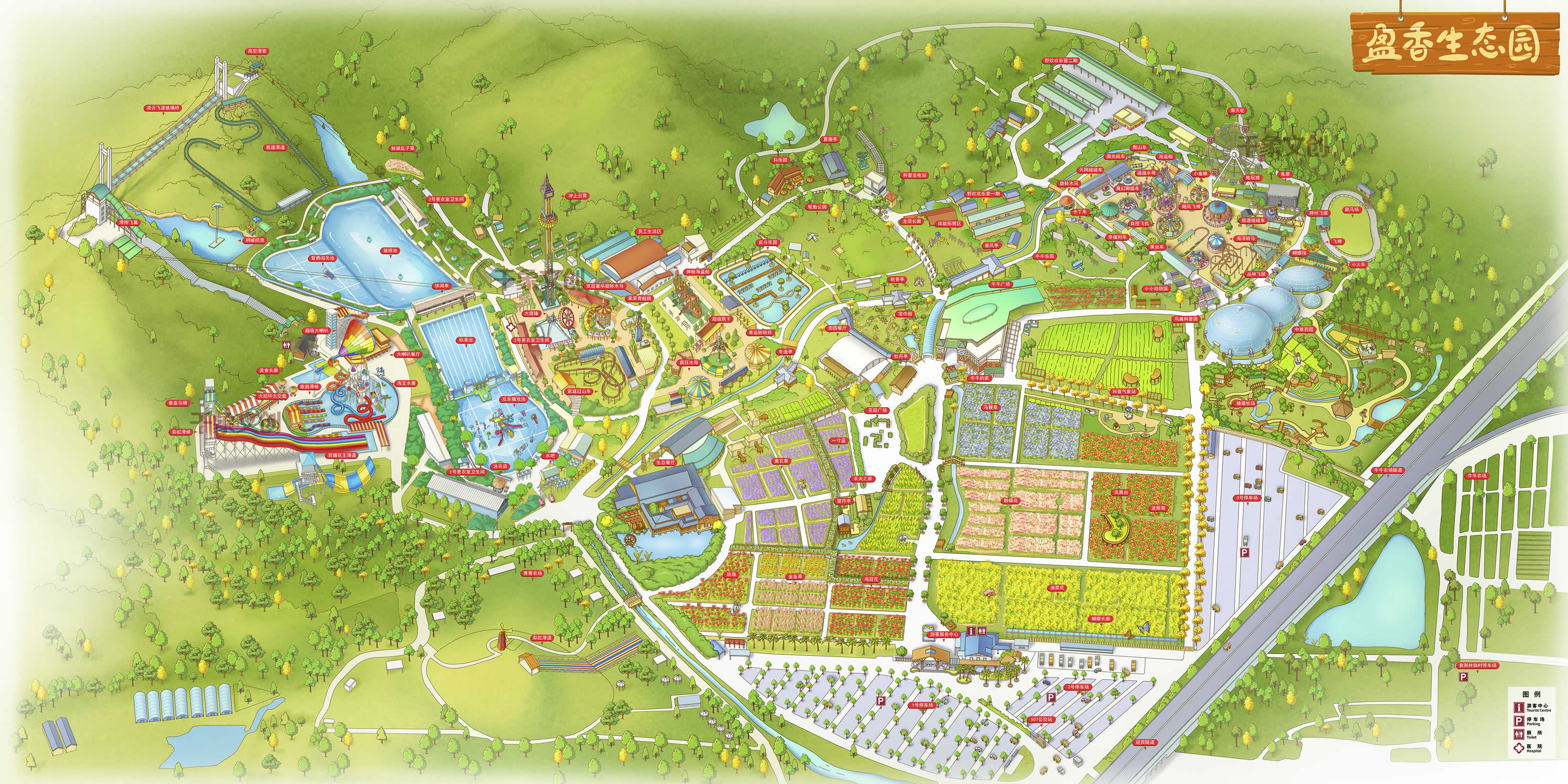 園內(nèi)設(shè)施主要包括有:凌云飛渡玻璃橋,水上樂園、百畝花海、科普王國、開心農(nóng)場(chǎng)、尖叫歡樂世界、開心牧場(chǎng)、抖樂園、彩虹滑道、野炊燒烤、手信店等。
