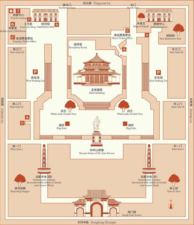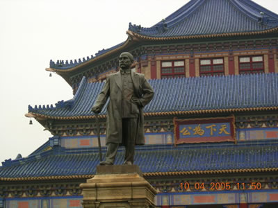 一般人很難注意到,沿著孫中山銅像往正門走,登上兩段臺階,這兩段臺階的級數分別是九級和五級。中國古代通常把數字分為陽數和陰數,奇數為陽,偶數為陰。陽數中九為最高,五居正中,因而常常以“九”和“五”象征帝王的權威,稱之為“九五之尊”。