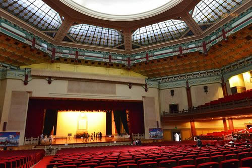 紀念堂內部結構異常堅固,全部用鋼架和鋼筋混凝土構成,大堂內空間極大,舞臺前上、下兩層有4729個席位,而中無一柱遮擋,全由隱蔽在墻壁間的八根大柱支撐,堪稱建筑藝術之杰作。