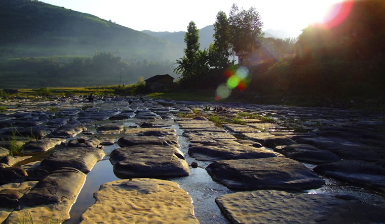 “神奇棋盤”坐落于田東縣最高峰——蓮花山下的靈岐河上,離那拔鎮(zhèn)政府僅3千米,距田東縣城40公里。專家認(rèn)為,水是縱向流動的,但棋盤灘“水橫流”,這成了一個難解之謎。 棋盤灘面積約有30000多平方米,“棋盤”由一塊塊浮出水面的,大小為1平方米左右的石塊組成,每一塊石塊的四周都被深、寬都在30厘米,縱橫交錯,互相貫通的水溝圍繞,而且常年流水潺潺,人在“棋子”上可以任意走動,水不濕腳。
