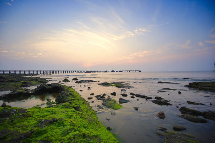 僑港浴場位于北海銀灘西部僑港鎮(zhèn),東起僑港道航燈塔,西至天湖酒店往西350米。灘寬500米左右,由純靜的高品位石英砂經(jīng)千年堆積而成,其砂子雪白如銀,細(xì)膩柔滑。