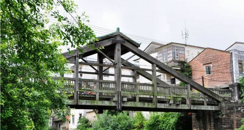 惠愛(ài)橋又名舊橋、西門(mén)橋,位于合浦縣廉州鎮(zhèn)惠愛(ài)路西門(mén)江上,宣統(tǒng)三年(1911年)建成。橋身為坤甸木當(dāng)?shù)厮追Q(chēng)“三鉸拱”。橋長(zhǎng)36米,寬2.75米,臺(tái)距18.4米,橋面至橋頂高5.64米。