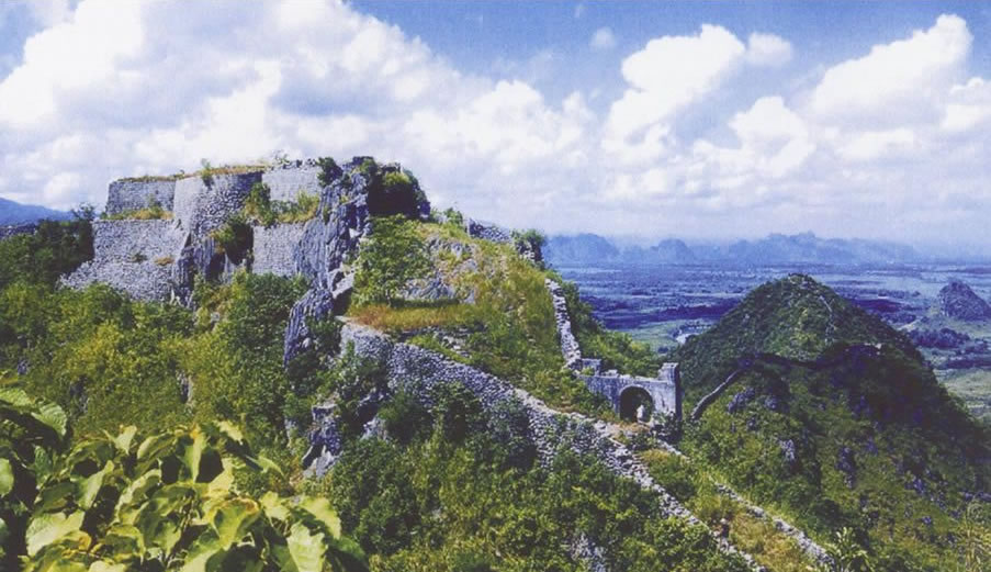 小連城又名將山炮臺,清光緒十二年(1886年),為抗法名將、廣西提督兼對汛督辦蘇元春為抵御法國軍隊入侵所建,時為桂越千里邊防線上的指揮中樞兼提督行轅。炮臺群沿山峰修建布置,炮臺間有城墻相連環(huán)護,共筑有炮臺十五座,裝備德國克魯伯大炮,扼守龍州的水陸門戶,是當時我區(qū)最大的軍事要塞,令法國侵略者不敢越雷池半步,使法國當局放棄了在中越邊境龍州段向中國進攻的圖謀,素有“南疆長城”之稱。1981年8月被定為自治區(qū)級重點文物保護單位,2006年5月被定為全國重點文物保護單位。2017年獲評國家4A級景區(qū)。