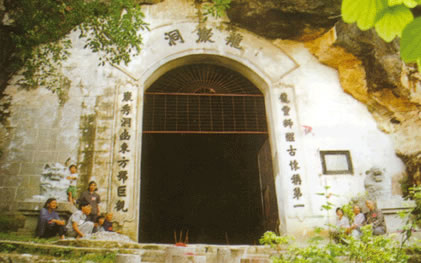 龍巖洞,位于貴港市城區(qū)東25千米的大圩鎮(zhèn)南郊附近的龍巖山西面半山腰上,人們沿“之”字形石級(jí)登山,踏上第一百一十一級(jí)便到洞府。此洞府門(mén)高約4米,門(mén)額上鐫刻著明萬(wàn)歷年間李燾的題字“龍巖洞”。進(jìn)入洞內(nèi),便見(jiàn)洞頂圓如華蓋,滑無(wú)纖塵。洞高15米,寬2500多平方米,可容千余人。洞內(nèi)空闊明爽,奇景甚多。