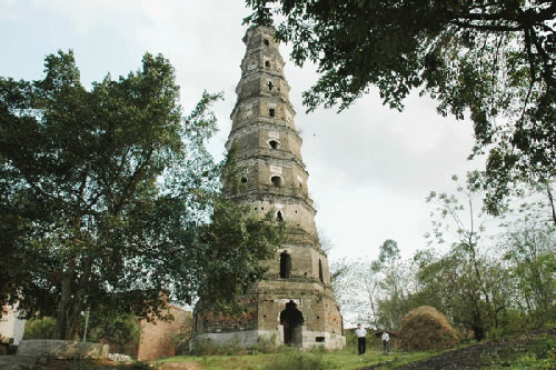 貴港市城東五里的羅泊灣,形如蘿卜,因而原名蘿卜灣。灣上有一座巍峨古塔,名曰安瀾,又曰漪瀾,塔高九層約30多米,底層周長(zhǎng)36.62米,墻厚1.9米,塔身呈八角形,共有35個(gè)形狀不同的窗口,坐南向北臨江而立,建筑風(fēng)格非常獨(dú)特。此塔建于清嘉慶二十三年(1818),已經(jīng)有200多年。昔日登塔可望江城,江中百舸爭(zhēng)流,浪擊飛舟,城上高樓林立,車(chē)水馬龍,人來(lái)人往,無(wú)限風(fēng)光在塔峰。此塔遭受過(guò)無(wú)數(shù)次特大洪水的沖撞和雷電轟擊,仍巋然不動(dòng),穩(wěn)如泰山,塔頂?shù)耐咂坏袈,塔身沒(méi)有毀損,保留全貌。